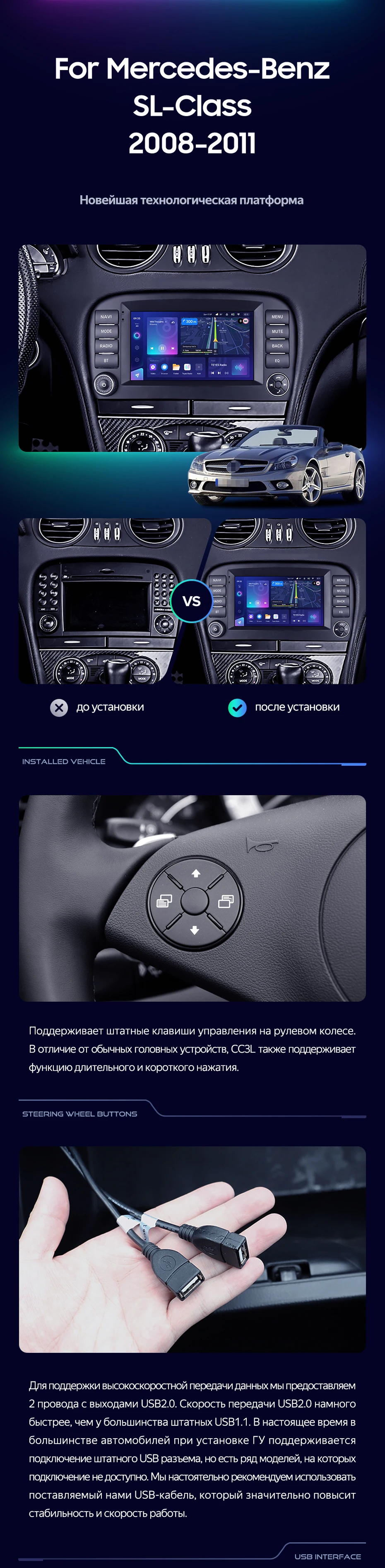 Переходная рамка Mercedes-Benz SL-Class R230 (2008-2011) (7") - купить всего за 7 000 руб. в интернет-магазине в Королёве Teyes.com.ru. ✓ Самый лучший выбор мультимедиа ✓ Лучшая замена штатному ГУ ✓ Тел. +7 (800) 775-31-74
