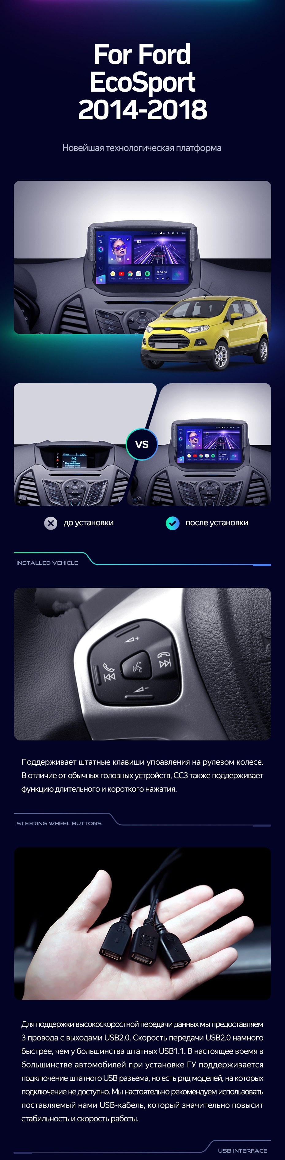 Штатная магнитола Teyes CC3 4/32 Ford EcoSport (2014-2018) F1 - купить всего за 33 530 руб. в интернет-магазине в Королёве Teyes.com.ru. ✓ Самый лучший выбор мультимедиа ✓ Лучшая замена штатному ГУ ✓ Тел. +7 (800) 775-31-74