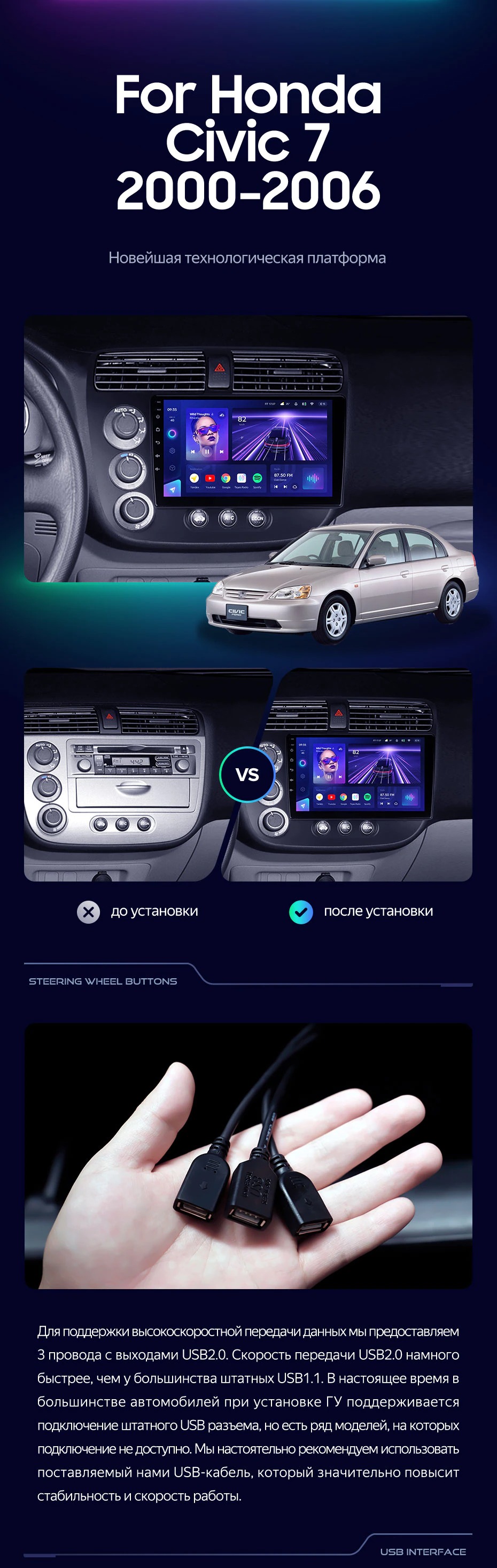 Штатная магнитола Teyes CC3 4/32 Honda Civic 7 (2000-2006) F1 - купить всего за 32 530 руб. в интернет-магазине в Королёве Teyes.com.ru. ✓ Самый лучший выбор мультимедиа ✓ Лучшая замена штатному ГУ ✓ Тел. +7 (800) 775-31-74