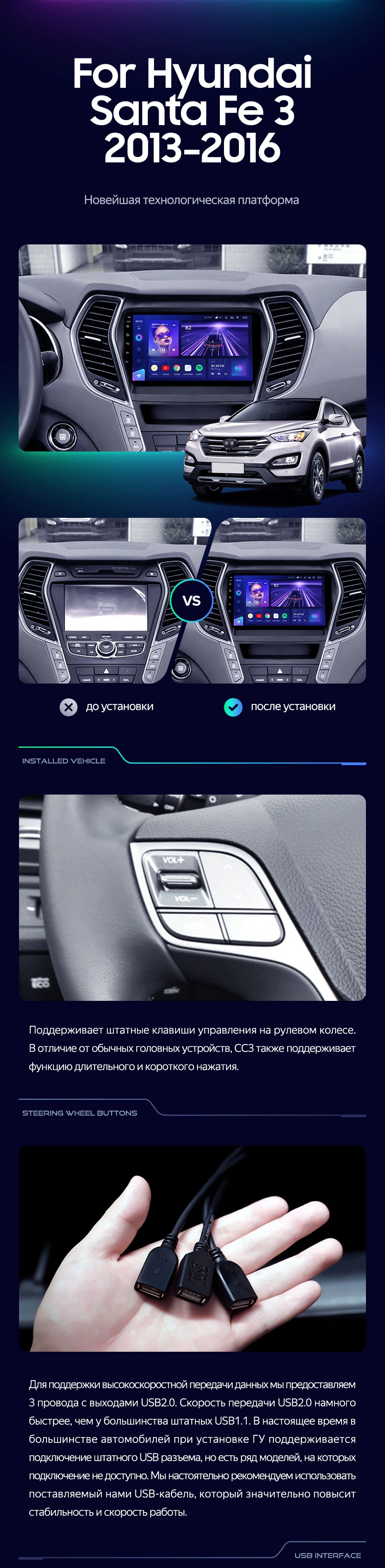 Штатная магнитола Teyes CC3L 4/32 Hyundai Santa Fe 3 (2013-2016) Тип-A - купить всего за 28 000 руб. в интернет-магазине в Королёве Teyes.com.ru. ✓ Самый лучший выбор мультимедиа ✓ Лучшая замена штатному ГУ ✓ Тел. +7 (800) 775-31-74