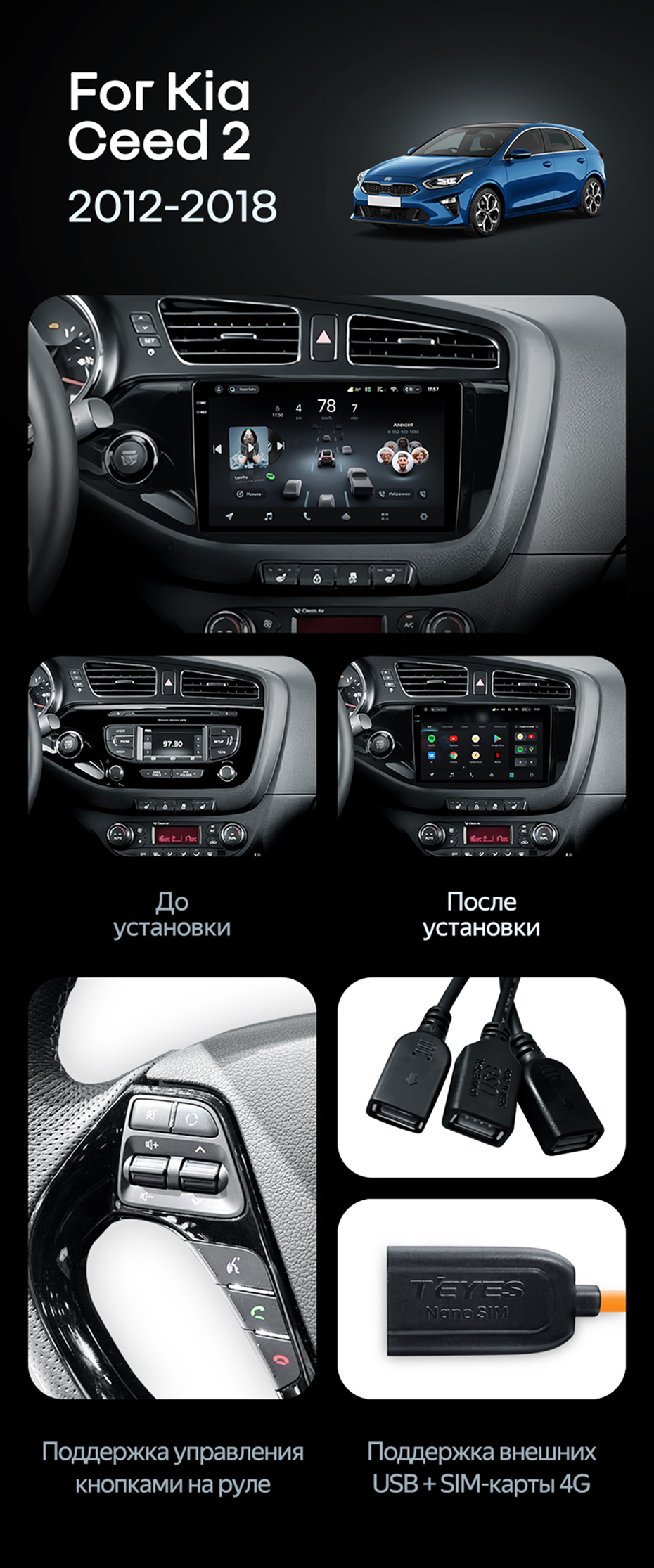 Штатная магнитола Teyes CC4 8/128 Kia Ceed 2 JD (2012-2018) - купить всего за 48 120 руб. в интернет-магазине в Королёве Teyes.com.ru. ✓ Самый лучший выбор мультимедиа ✓ Лучшая замена штатному ГУ ✓ Тел. +7 (800) 775-31-74