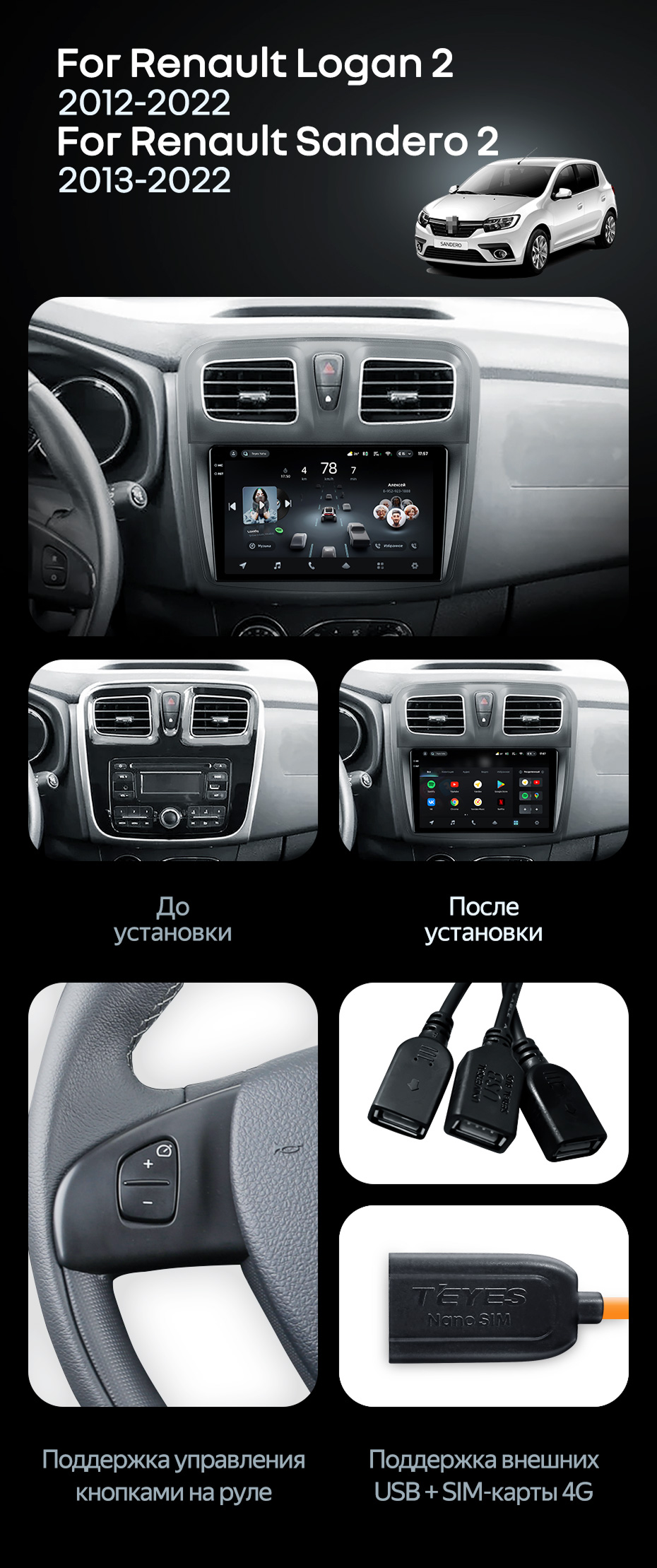 Штатная магнитола Teyes CC4 8/128 Renault Logan 2 (2012-2022) F2 - купить всего за 47 700 руб. в интернет-магазине в Королёве Teyes.com.ru. ✓ Самый лучший выбор мультимедиа ✓ Лучшая замена штатному ГУ ✓ Тел. +7 (800) 775-31-74