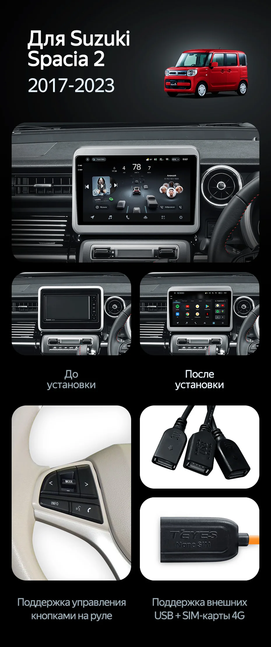 Штатная магнитола Teyes CC4 8/128 Suzuki Spacia 2 (2017-2023) - купить всего за 47 900 руб. в интернет-магазине в Королёве Teyes.com.ru. ✓ Самый лучший выбор мультимедиа ✓ Лучшая замена штатному ГУ ✓ Тел. +7 (800) 775-31-74