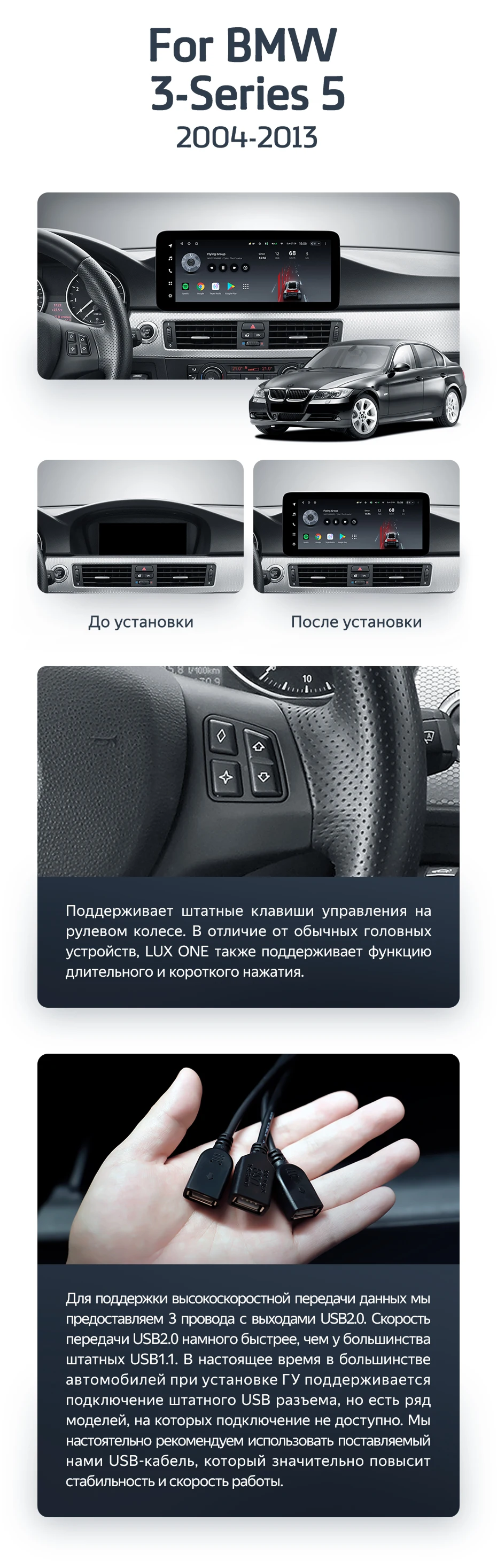 Teyes LUX ONE - это инновационная система автомобильного развлечения созданная для владельцев BMW. Совмещая передовые технологии и функции, эта умная мультимедийная система обеспечит вам комфорт, удобство и развлечение во время каждой поездки.